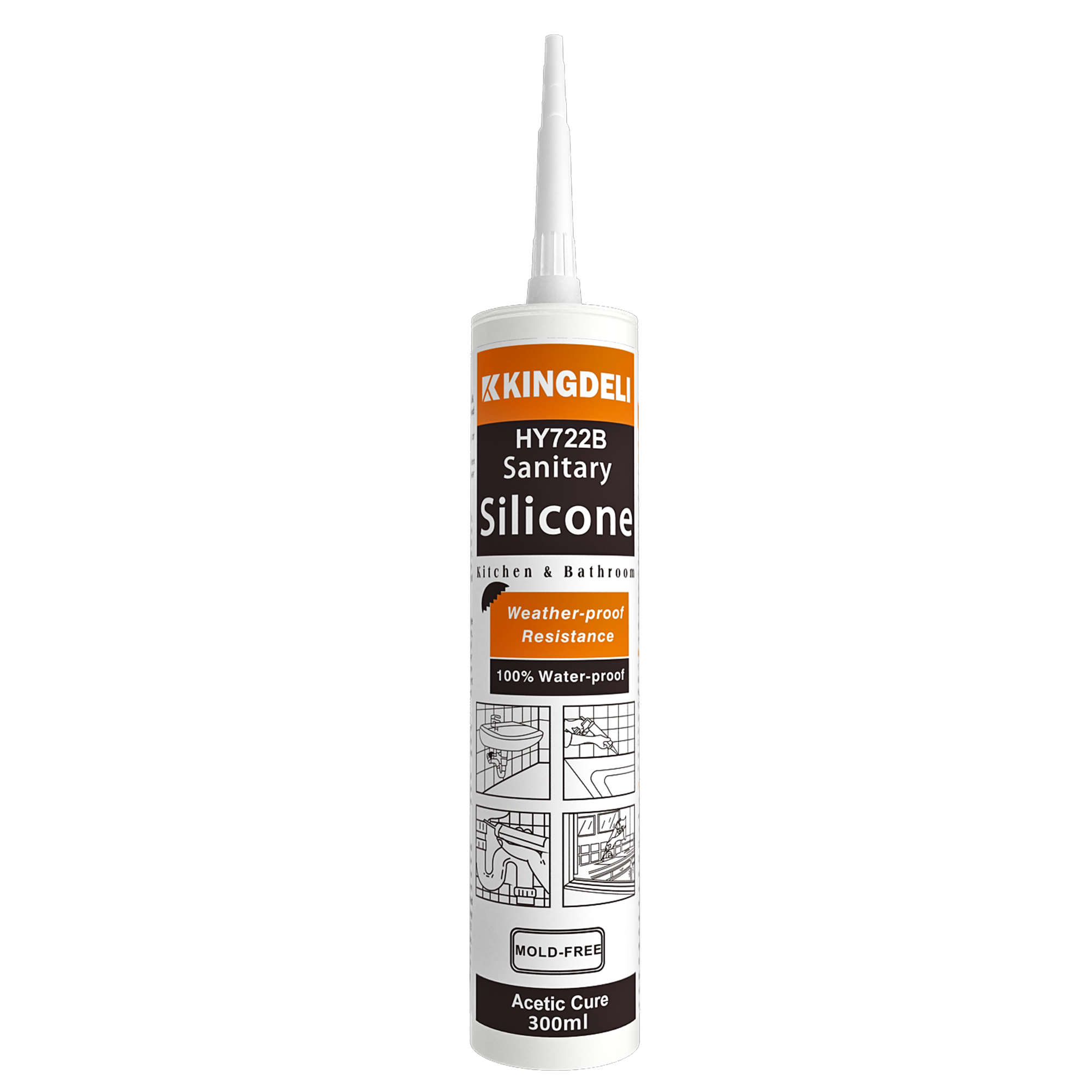 HY-722B Sanitary Acetic Silicone Sealant is a one-component, shelf-stable, acetic cure, elastomeric silicone sealant designed for sanitary and general glazing applications. It cures rapidly to form an extremely tough and flexible rubber with excellent adhesion to a wide range of substrates. The sealant maintains stable performance across a broad temperature range and offers outstanding resistance to fungus growth and aging, making it ideal for wet and humid environments such as bathrooms and kitchens.