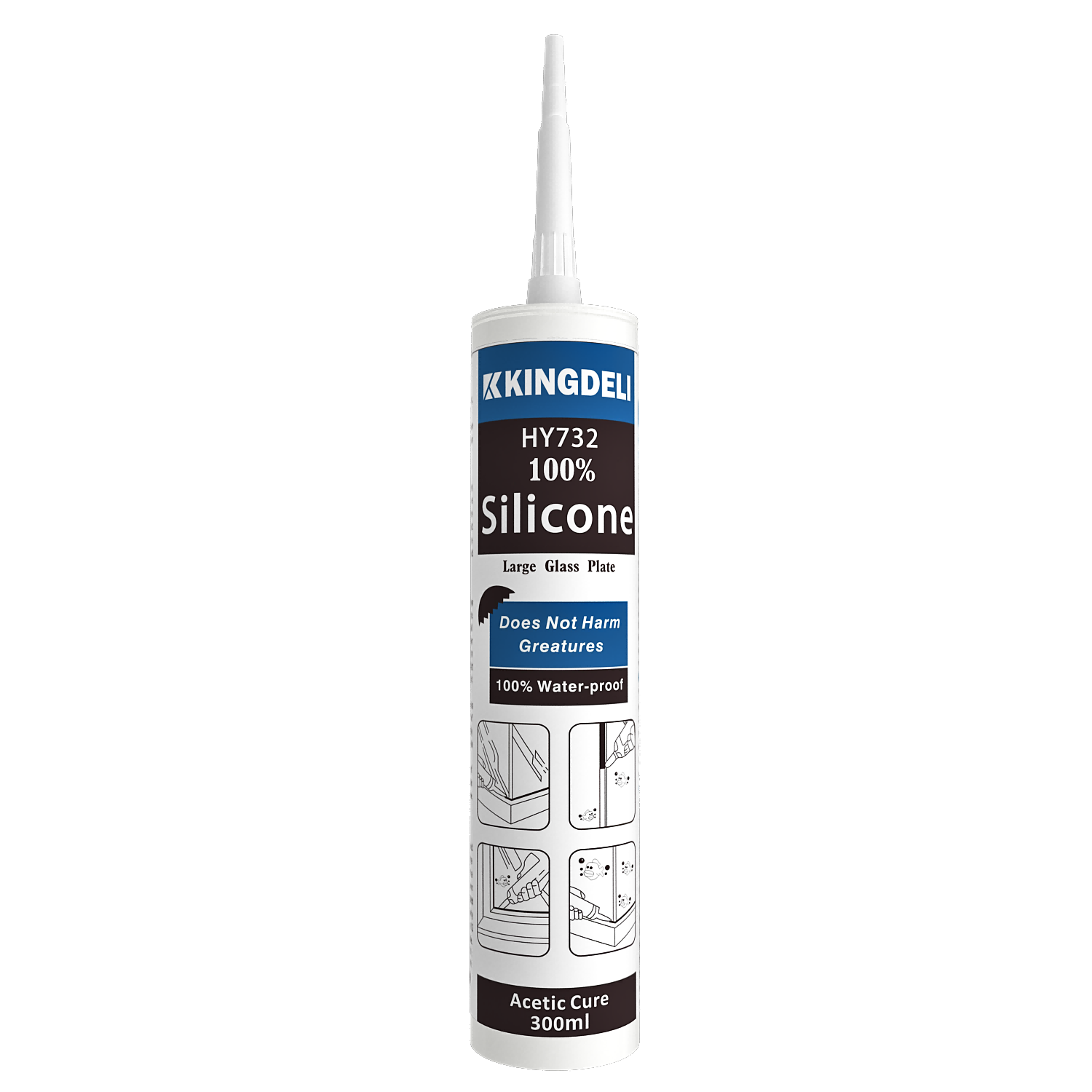 KINGDELI HY732 is a professional-grade, one-component acetoxy cure silicone sealant designed for fast curing, strong adhesion, and long-lasting flexibility. Ideal for aquariums, glass applications, aluminum doors and windows, kitchens, and bathrooms, it provides reliable sealing performance with excellent anti-fungal protection in high-humidity environments.